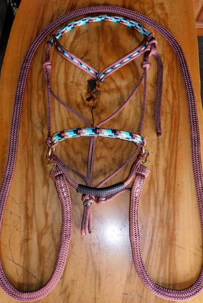 Simple chin riding halter and reins set in light brown with "Apache Dream" padding/inset.
